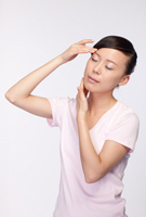手を顔にあてる
