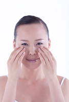 コットンを顔にあてる