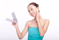 コットンを顔にあてる
